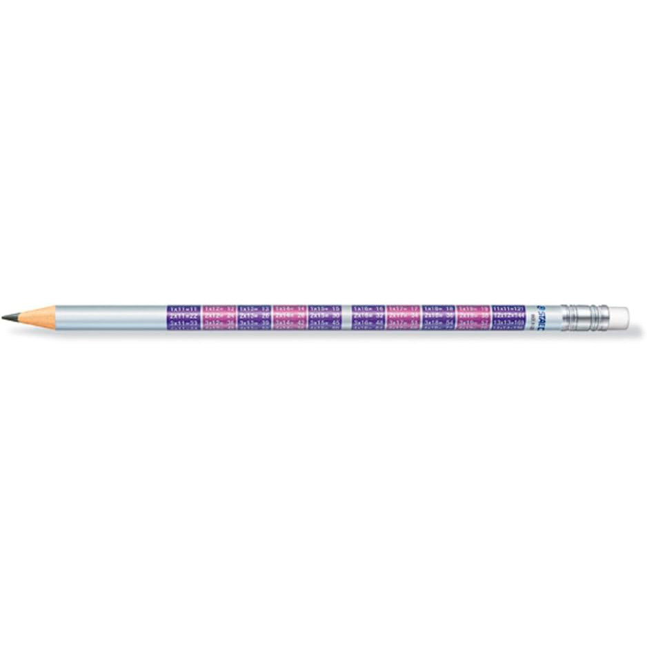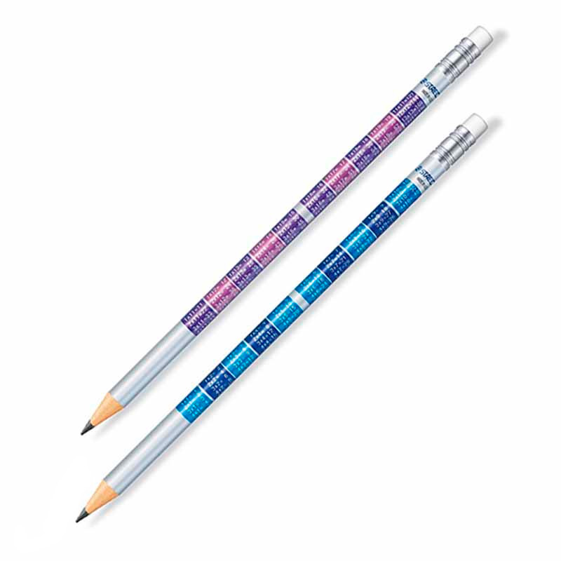 Корпус карандаша окрашен в серебристый цвет с нанесенной таблицей умножения.