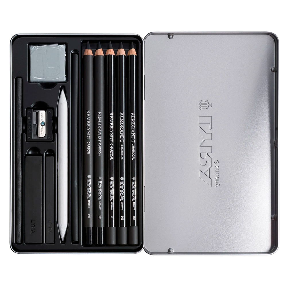 Набор Lyra Rembrandt Charcoal – это идеальный инструмент для монохромного рисования с использованием мягких, средних и твердых грифелей. Они легко смешиваются и тушуются.