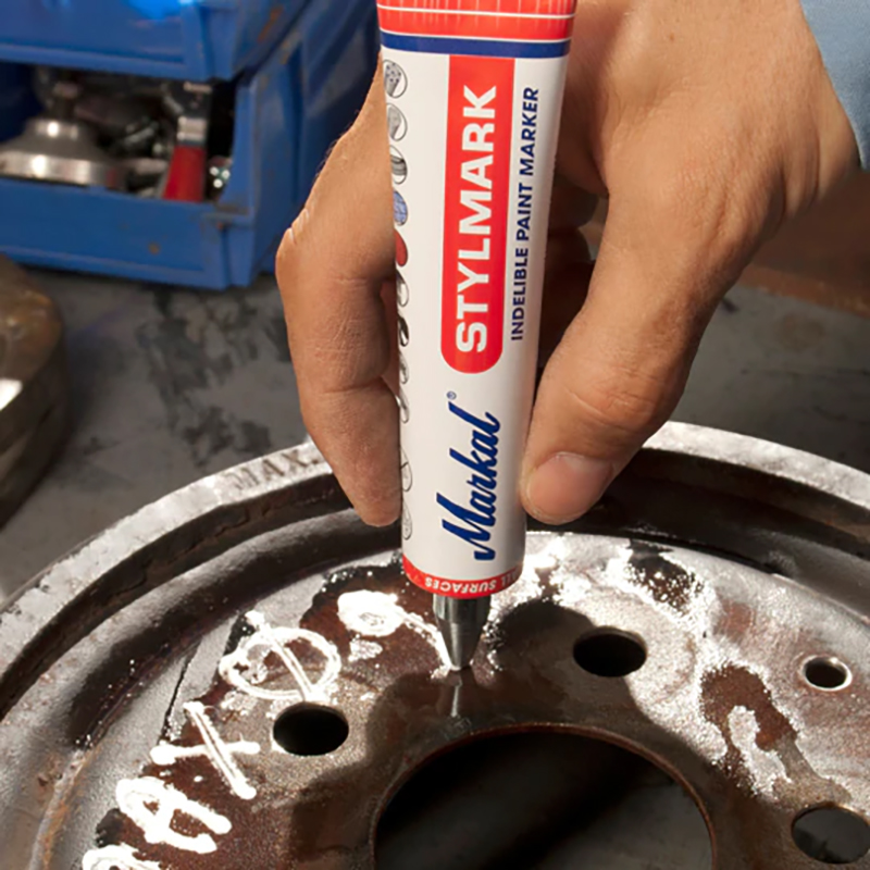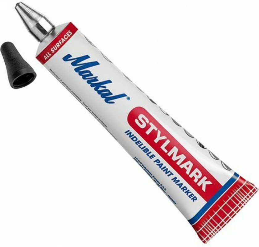 Markal Stylmark - это металлический наконечник для маркировки большинства поверхностей. Алюминиевая отжимная трубка и густая краска делают ее пригодной для шероховатых, вертикальных и верхних поверхностей с отличной адгезией к масляным и мокрым поверхностям. Краска без ксилола снижает риски для здоровья пользователя.