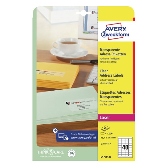 Эти прозрачные этикетки могут быть напечатаны как на черно-белых, так и на цветных лазерных принтерах.
