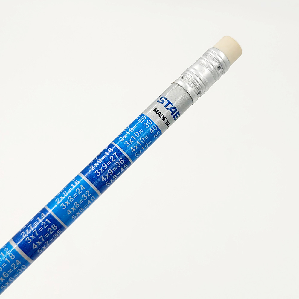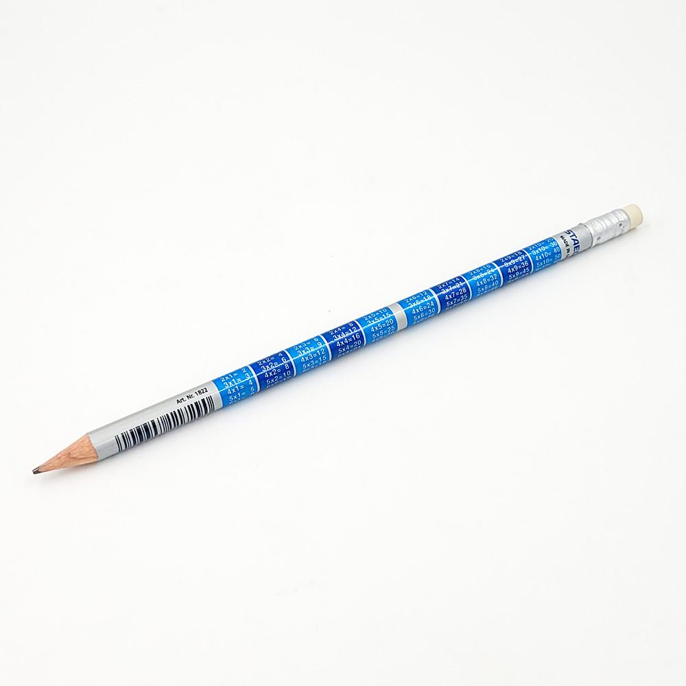 Корпус карандаша окрашен в серебристый цвет с нанесенной таблицей умножения.