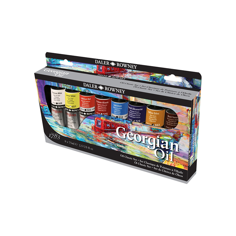 Качественные масляные краски "Georgian" от английской фирмы "Daler-Rowney" названы в честь Джорджа Роуни (George Rowney) - человека, основавшего компанию еще в 1783 году. Они сочетают в себе все лучшие английские традиции в производстве красок и современные технологические возможности. Спектр красок "Georgian" насчитывает 58 стойких насыщенных оттенков, которые прекрасно смешиваются друг с другом, не образуя "грязи", поскольку половина из этих оттенков - одно пигментные. Консистенция красок позволяет работать и кистью, и мастихином, и просто тюбиком по холсту. Время высыхания всех красок серии "Georgian" приведено примерно к одному значению - 4-5 дней.