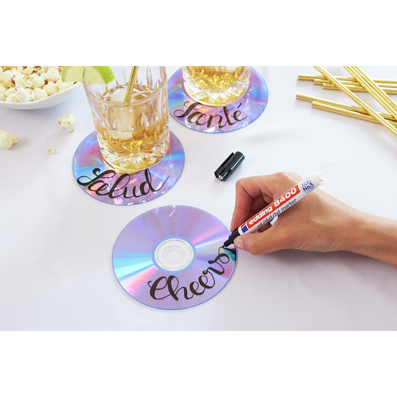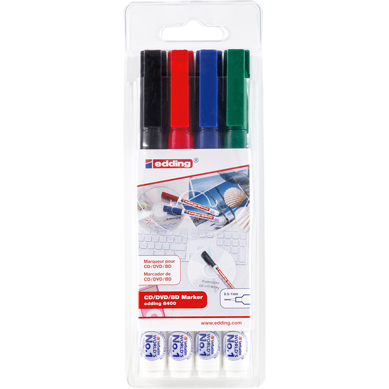 Чернила созданы на водной основе и не содержат растворителей, что, в сочетании с мягким наконечником, обеспечивает максимальную сохранность данных. Маркер для дисков CD/DVD/Blu-ray edding 8400 доступен в различных цветах.