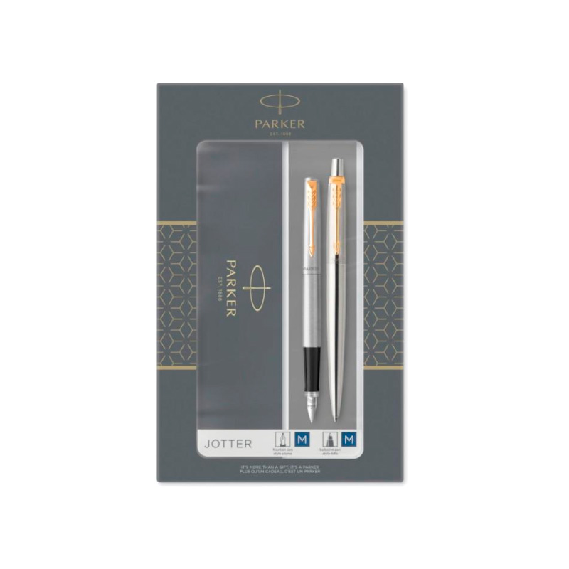 Подарочный набор шариковая и перьевая ручка Parker Jotter Stainless Steel GT имеет классический дизайн и узнаваемое во всем мире имя, популярное благодаря высокому качеству, прочности и соотношению цена - качество. Эти ручки олицетворяет такую сторону письма, как общение - благодаря стильным цветам и практичной, простой форме.