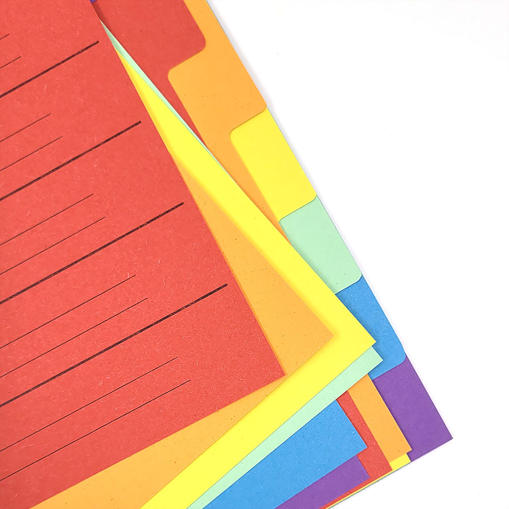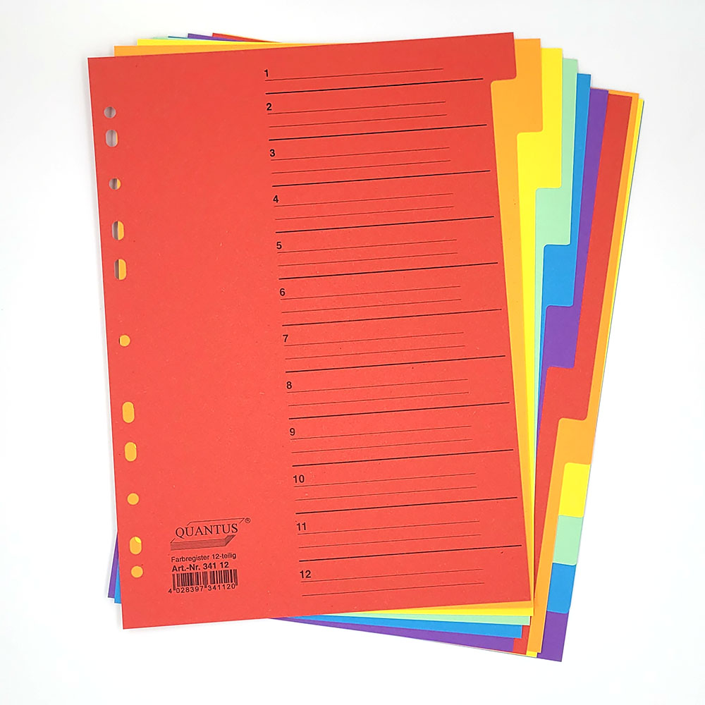 Разделители листов для папок-регистраторов и архивных папок от немецкого производителя Quantus из картона. Каждый лист разделителя имеет свой цвет, что облегчает поиск.