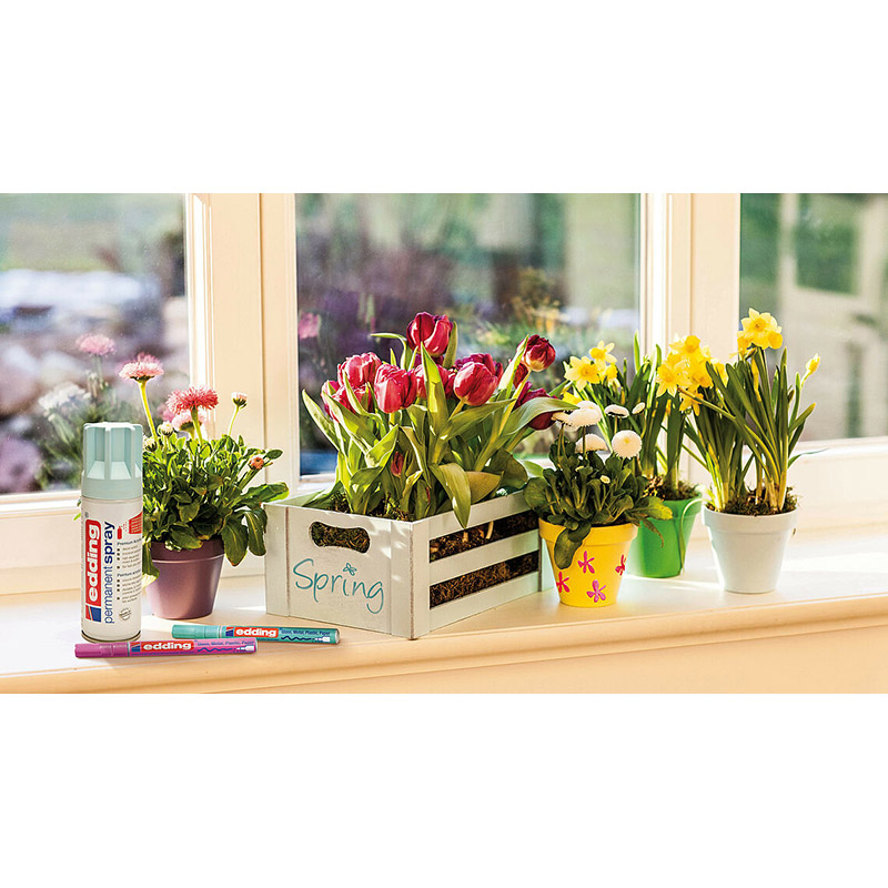 Эти перманентные аэрозольные краски премиум-класса от edding отличаются своей необычайной плотностью слоя, чрезвычайно быстро сохнут, а созданное с их помощью покрытие отличается долговечностью при использовании как внутри помещений, так и снаружи. Они также являются чемпионами в укрывистости: в зависимости от оттенка, их кроющая способность до 100 % лучше, чем у обычных аэрозольных красок.